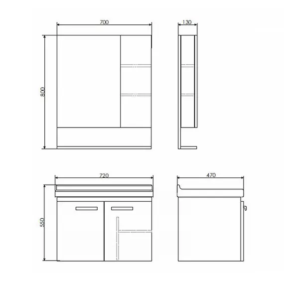 За створками вертикальная перегородка по центру и горизонтальная полка справа. В комплекте с тумбой гарантийный талон и необходимый крепеж для монтажа на стену. Тумба подготовлена для подключения водоснабжения снизу.