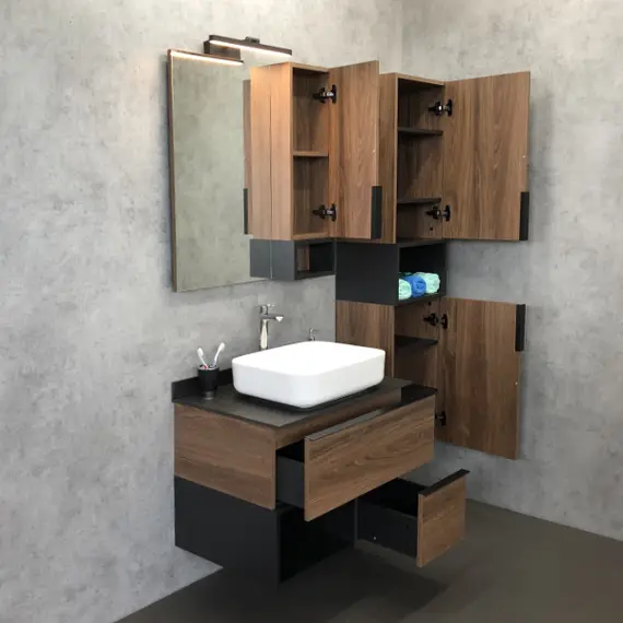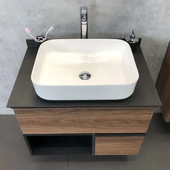 Тумба-умывальник Comforty Штутгарт-75 дуб тёмно-коричневый с черной столешницей c раковиной COMFORTY T-Y9378