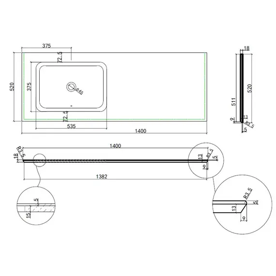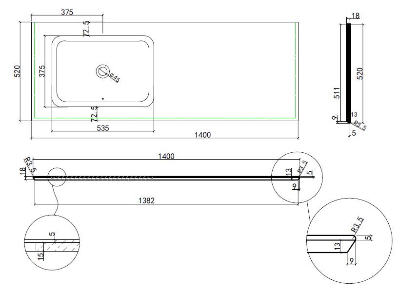Столешница из кварца с интегрированной раковиной Vincea VWTB-4LX140QBG-L, левая, бежевый