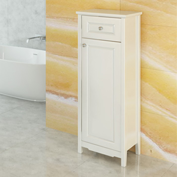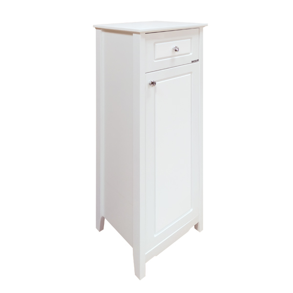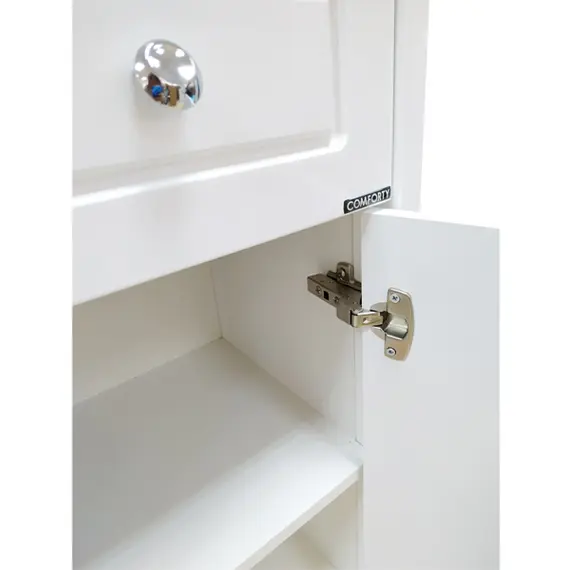 Полуколонна с одной створкой и ящиком. Створка оснащена петлями с плавным закрыванием. Фасады из МДФ покрыты белой глянцевой эмалью.