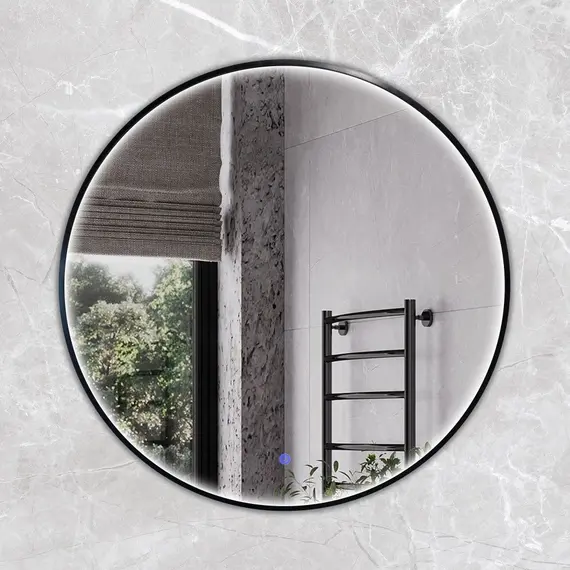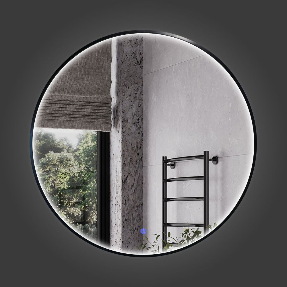 Круглое зеркало в алюминиевой раме Comforty Вега-75 LED IC-подсветка, холодный свет, сенсор, чёрный матовый