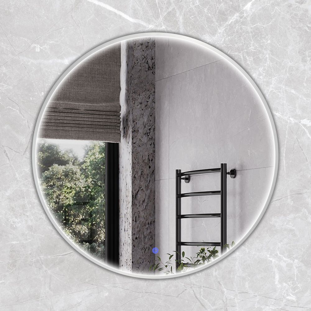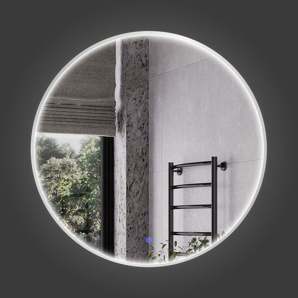 Круглое зеркало в алюминиевой раме Comforty Вега-75 LED IC-подсветка, холодный свет, сенсор, серебряный матовый