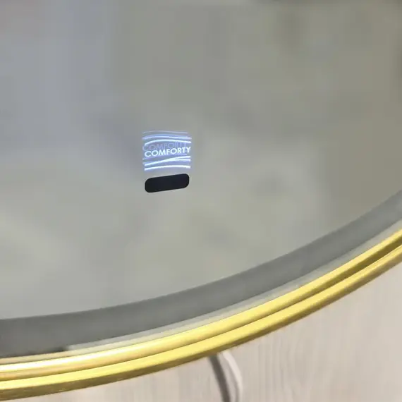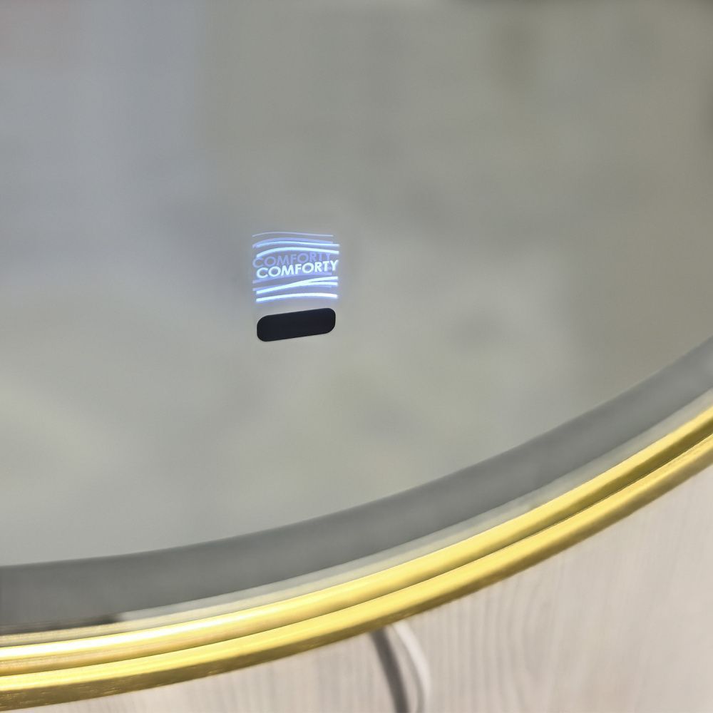 Круглое зеркало в алюминиевой раме цвет золото Comforty Лея-75, LED-подсветка, бесконтактный сенсор, антизапотевание