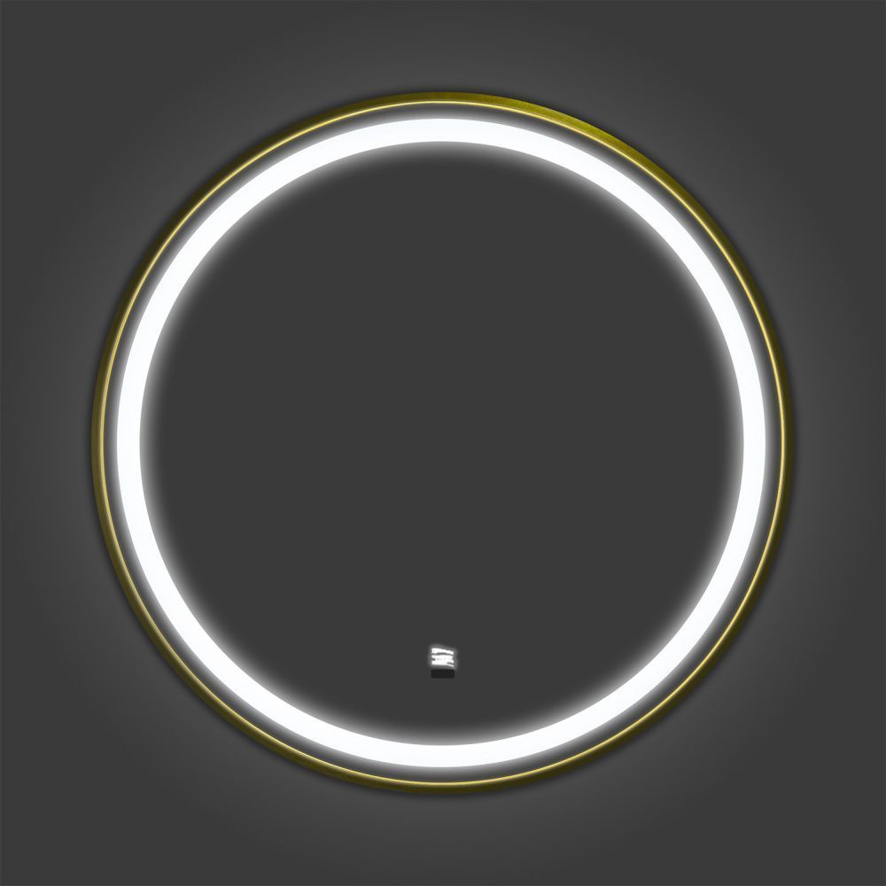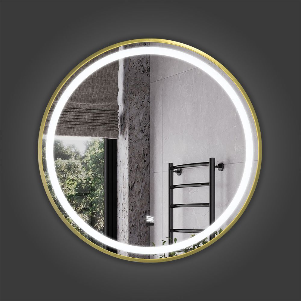 Круглое зеркало в золотой алюминиевой раме Comforty Лея-60 LED-подсветка, бесконтактный сенсор, антизапотевание