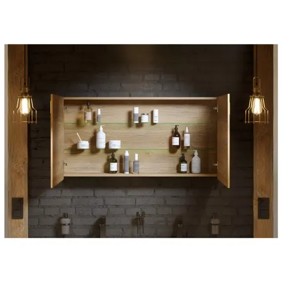Зеркальный шкаф AQWELLA 100 см с двумя дверьми на петлях с доводчиком, бетон