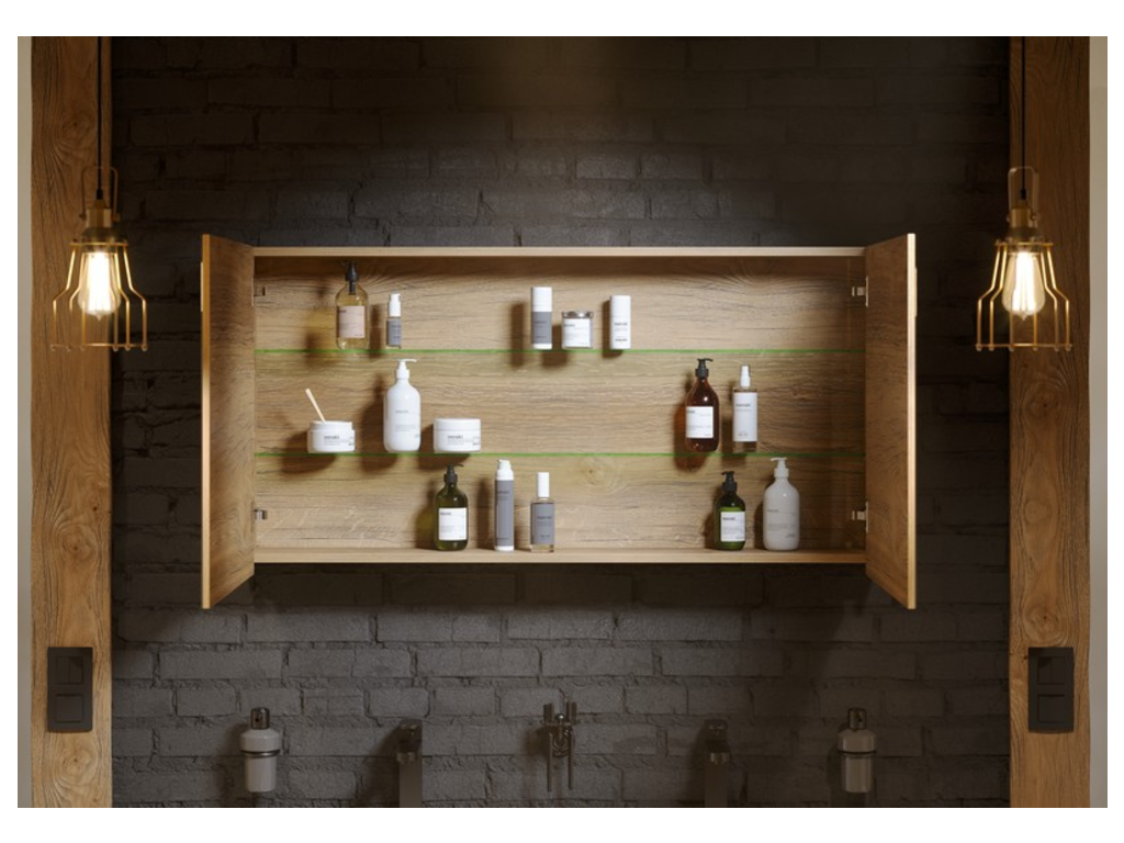 Зеркальный шкаф AQWELLA 120 см с двумя дверьми на петлях с доводчиком, дуб балтийский