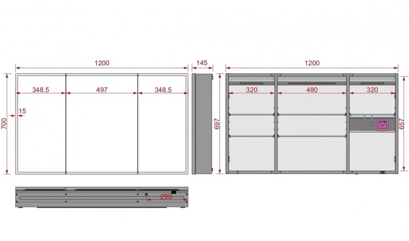 - Встроенная розетка 220V внутри шкафа; USB + micro USB;