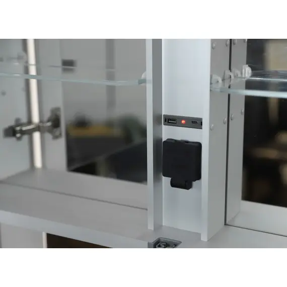 - Встроенная розетка 220V внутри шкафа; USB + micro USB;