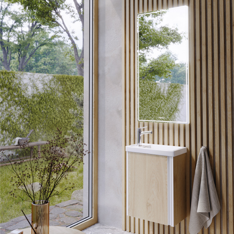 Зеркало AQWELLA 40 см со светодиодной подсветкой, сенсорным выключателем и регулятором освещенности