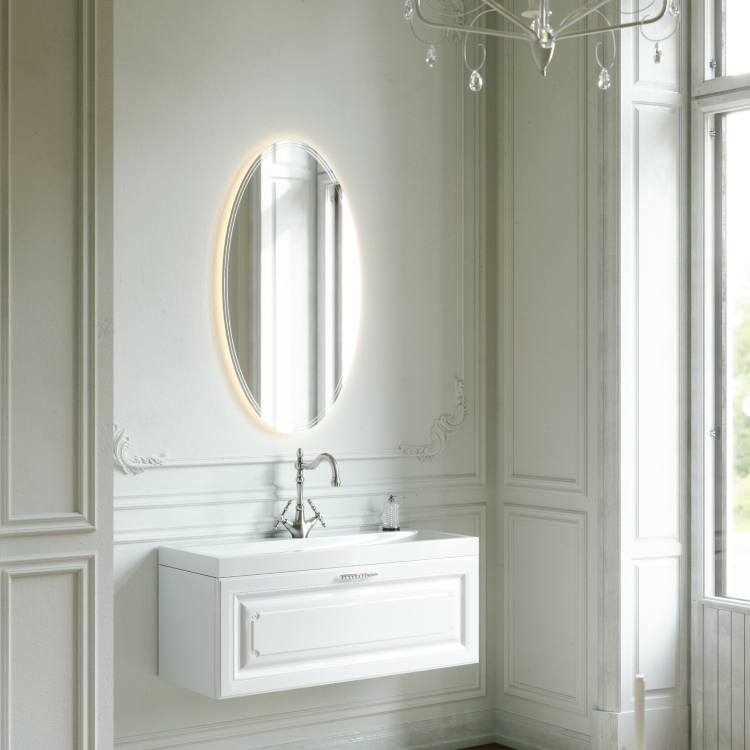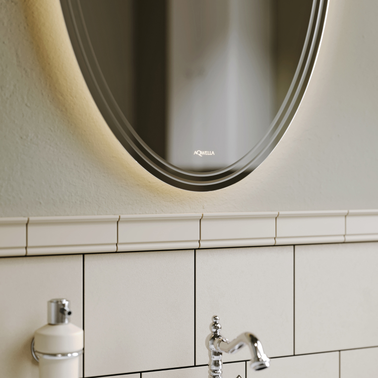 Зеркало AQWELLA 55 см со светодиодной подсветкой, сенсорным выключателем, регулятором освещенности и обогревом