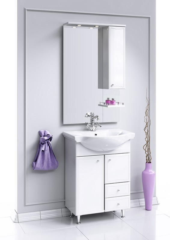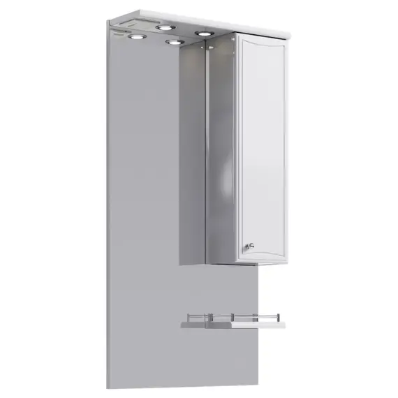 Зеркало AQWELLA 60 см с полочками, шкафчиком, светодиодной подсветкой, выключателем и розеткой