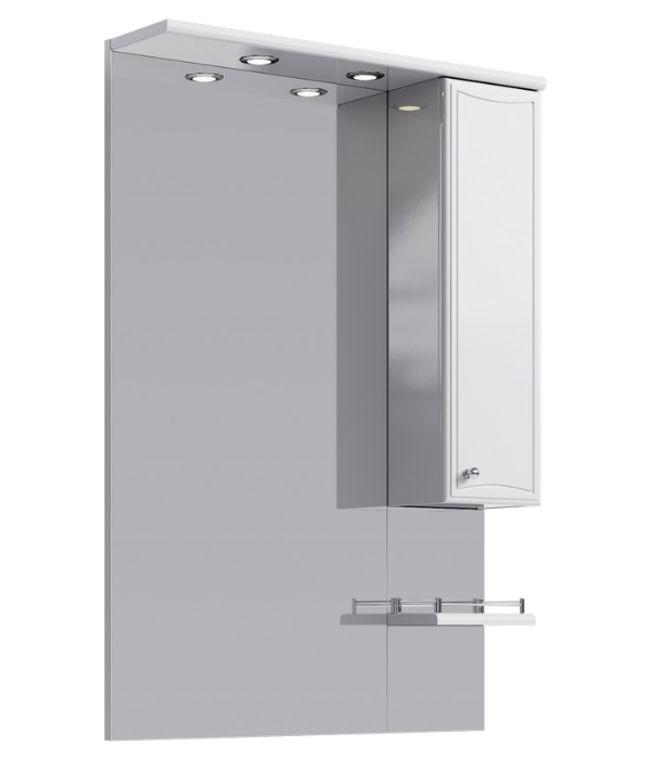 Зеркало AQWELLA 70 см с полочками, шкафчиком, светодиодной подсветкой, выключателем и розеткой