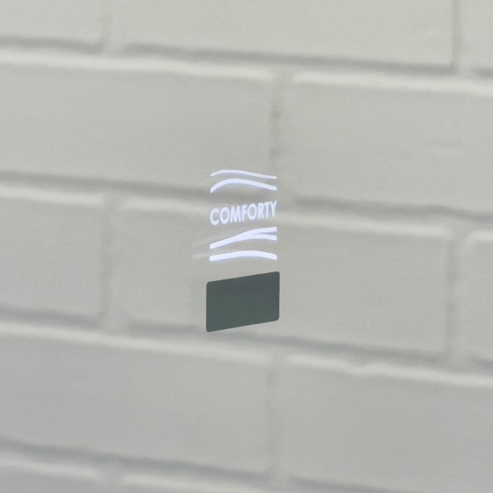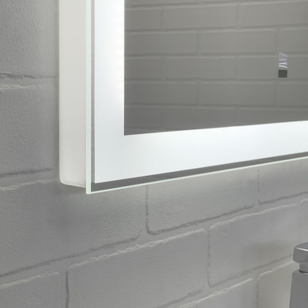 Зеркало оснащено встроенным светодиодным светильником и бесконтактной кнопкой включения подсветки.