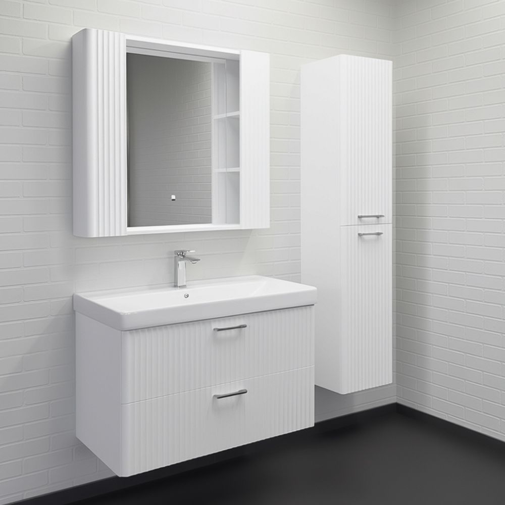 Зеркало-шкаф Comforty Ангара-90 белое, с LED подсветкой и антизапотеванием