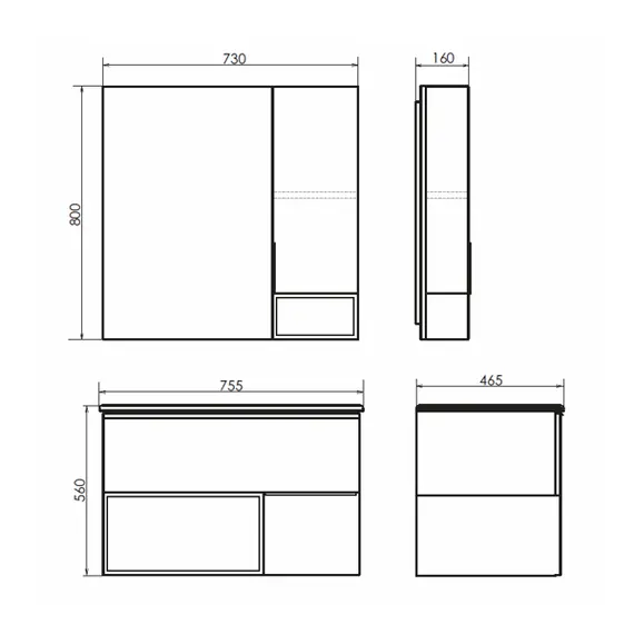 Створка оснащена петлями с механизмом плавного закрывания. Петли справа. Ручка створки из черного алюминия. За створкой одна полка.