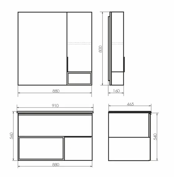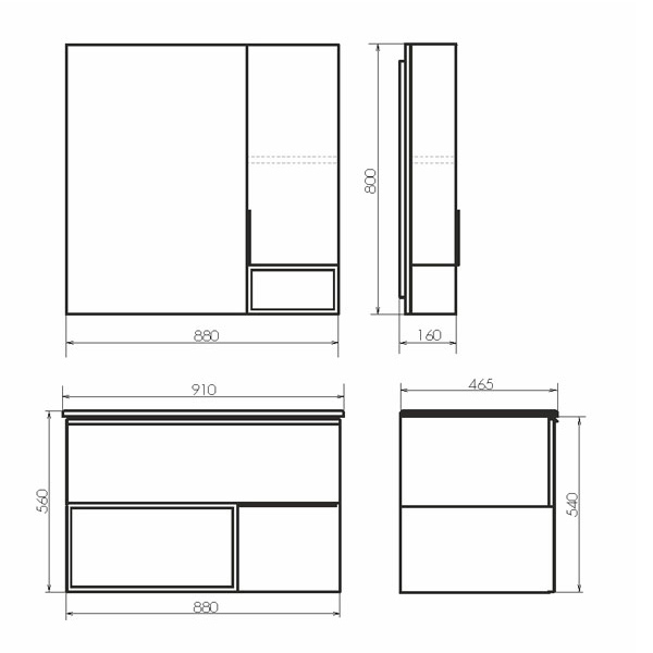 Габариты (ШхВхГ): 880*800*160 мм