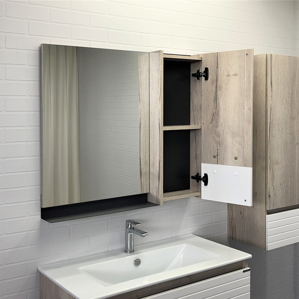 Зеркало и мебельный элемент два отдельных изделия, поэтому могут быть подвешены, как в правом так и в левом варианте.