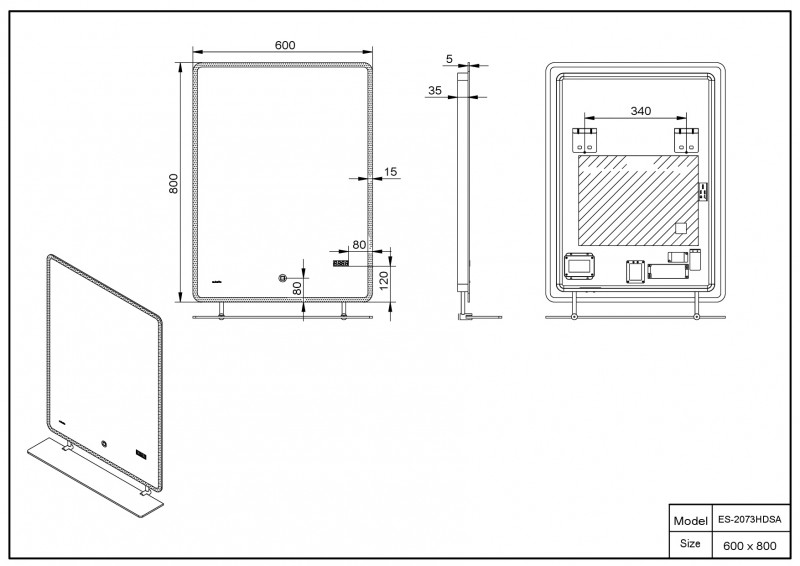 Зеркало со встроенной подсветкой ESBANO ES-2073 HDSA 60x80x5