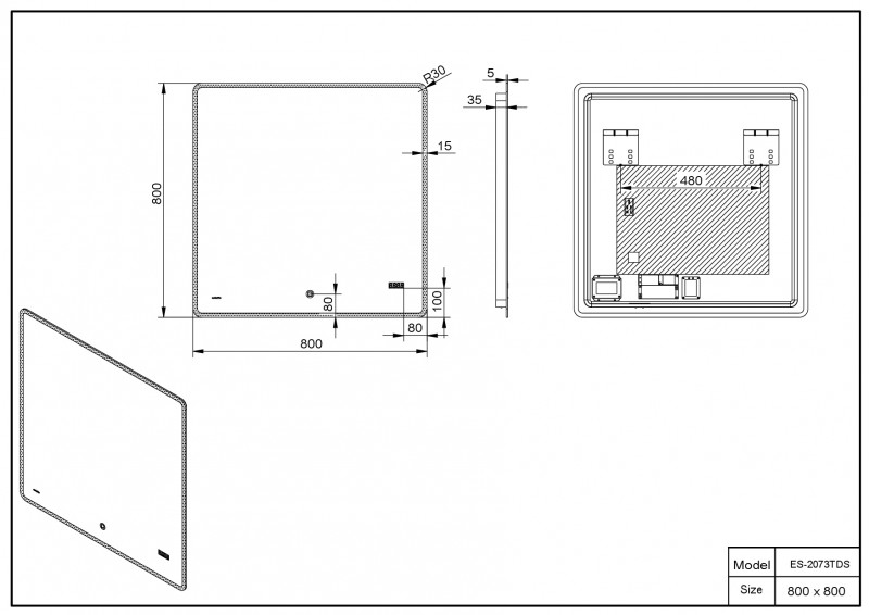 Зеркало со встроенной подсветкой ESBANO ES-2073 TDS 80x80x5