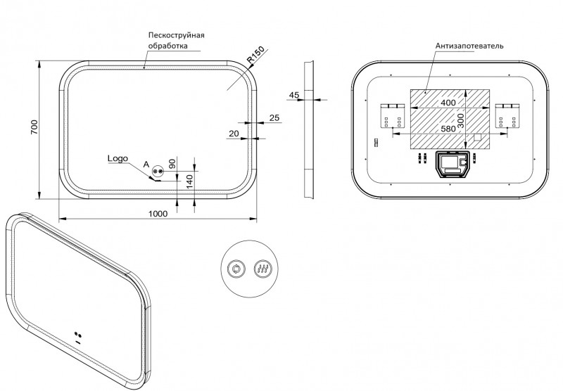 Зеркало со встроенной подсветкой ESBANO ES-3310KDG 1000х700