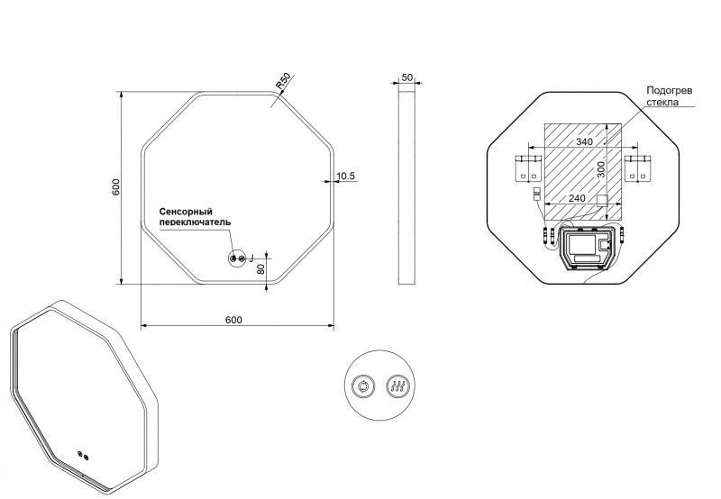 Зеркало со встроенной подсветкой ESBANO ES-3311SD 600х600
