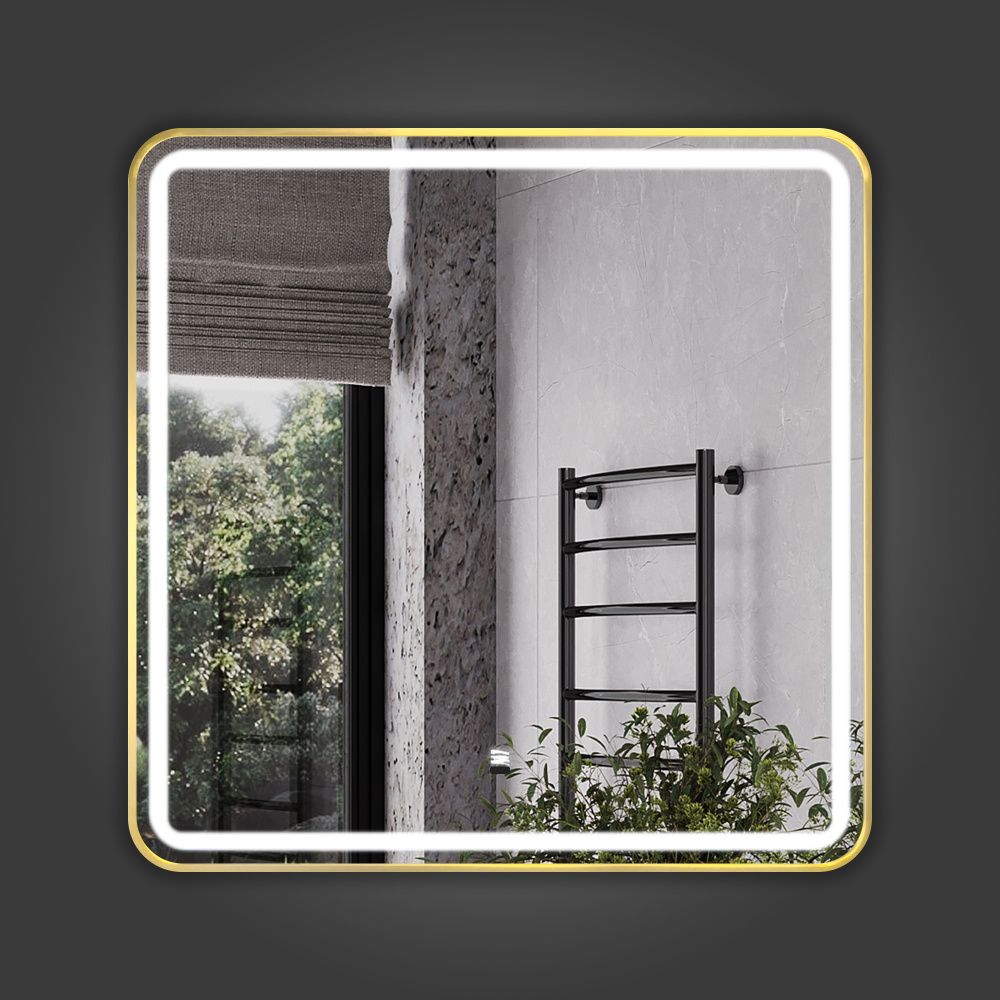 Зеркало в алюминиевой раме цвет золото Comforty Ситара-80 LED-подсветка, бесконтактный сенсор, антизапотевание
