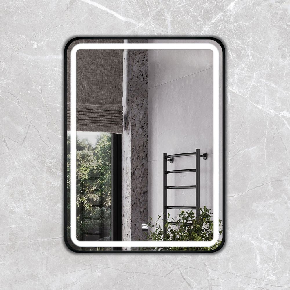 Зеркало в черной алюминиевой раме 60 см для ванной комнаты Comforty Ситара-60, LED-подсветка, бесконтактный сенсор
