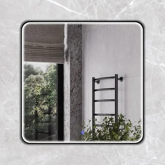 Зеркало в черной алюминиевой раме 80 см Comforty Сириус-80 LED IC-подсветка холодный свет, сенсор