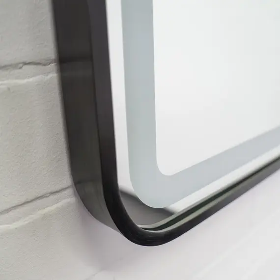 Зеркало в черной алюминиевой раме 80 см для ванной комнаты Comforty Ситара-80, LED-подсветка, бесконтактный сенсор, антизапотевание