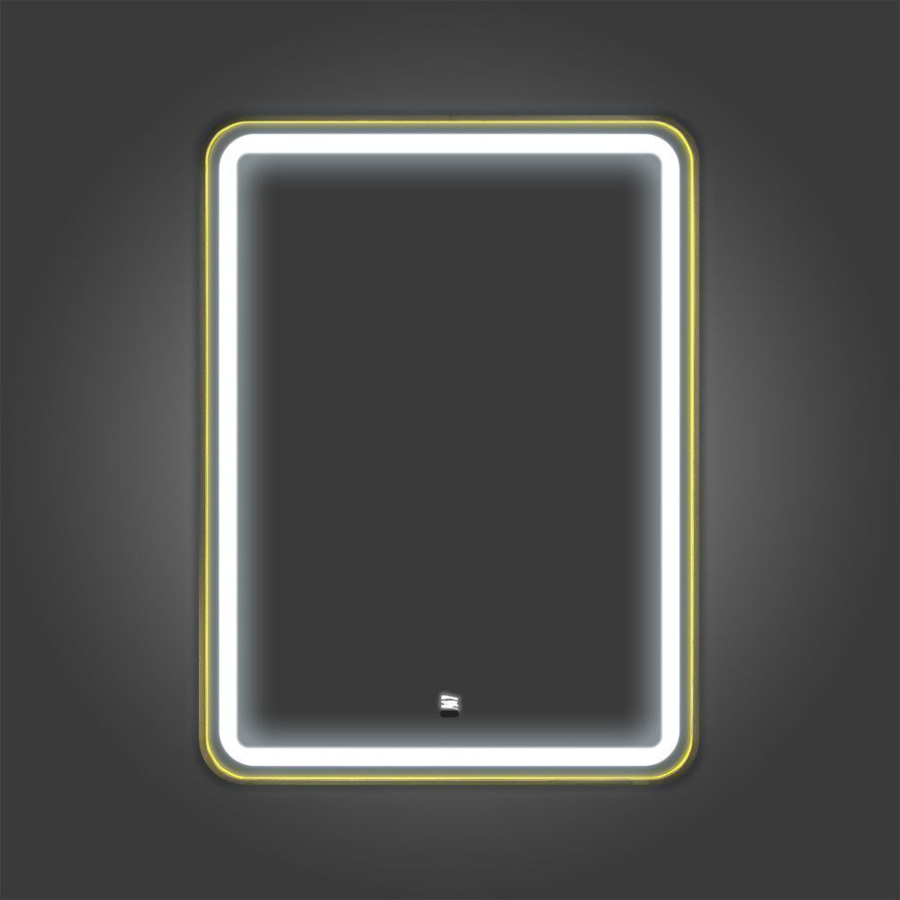 Зеркало в золотой алюминиевой раме 60 см для ванной комнаты Comforty Ситара-60, LED-подсветка, бесконтактный сенсор