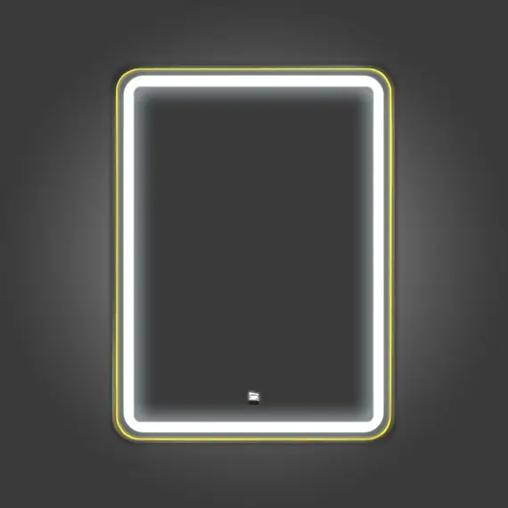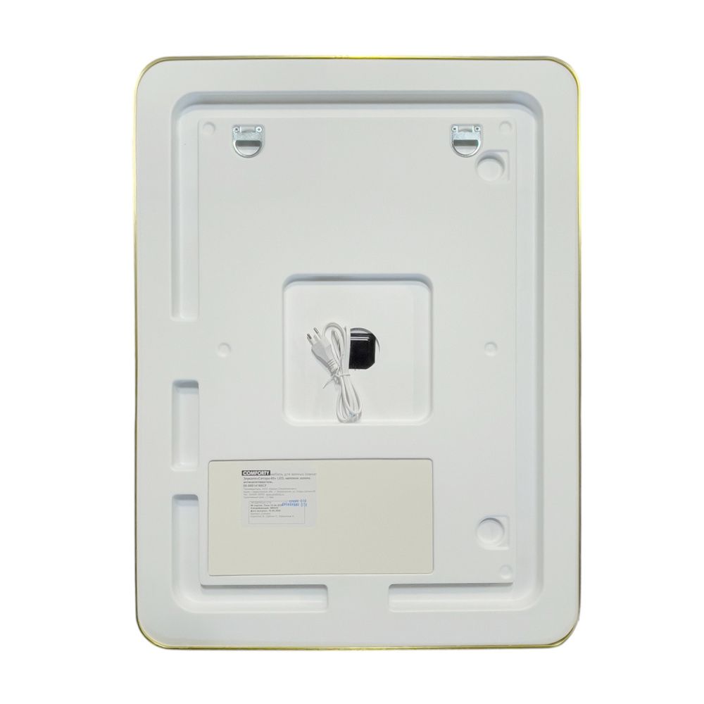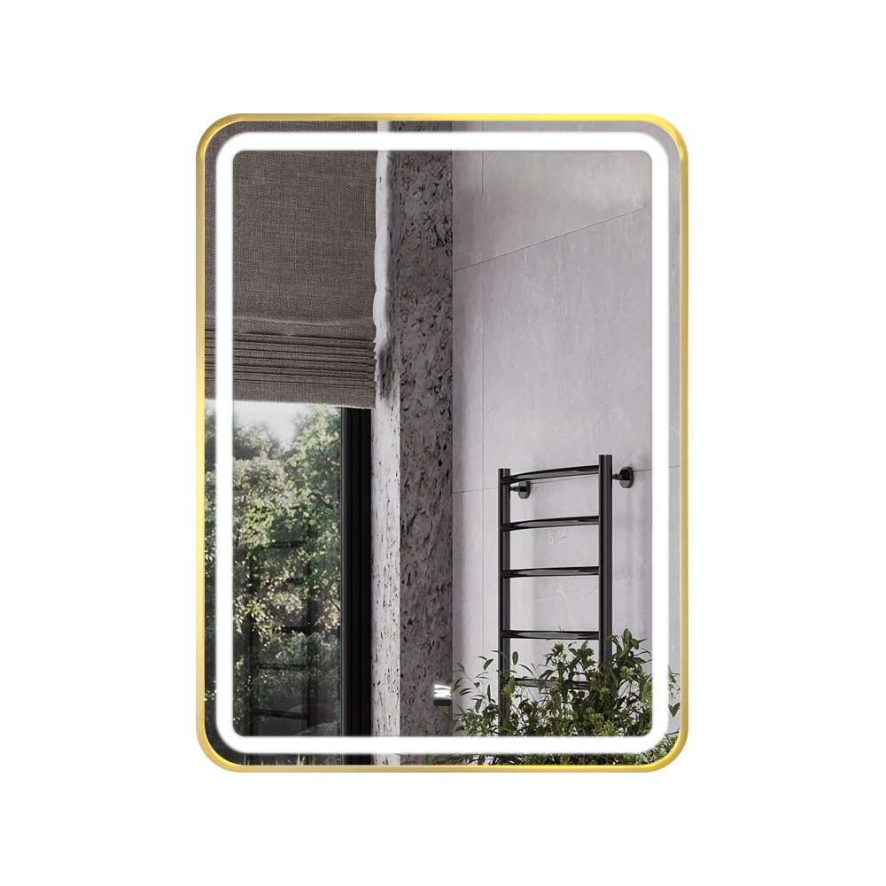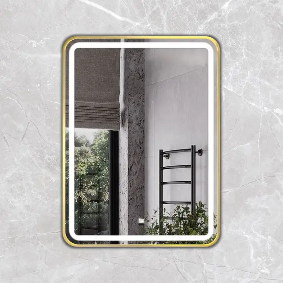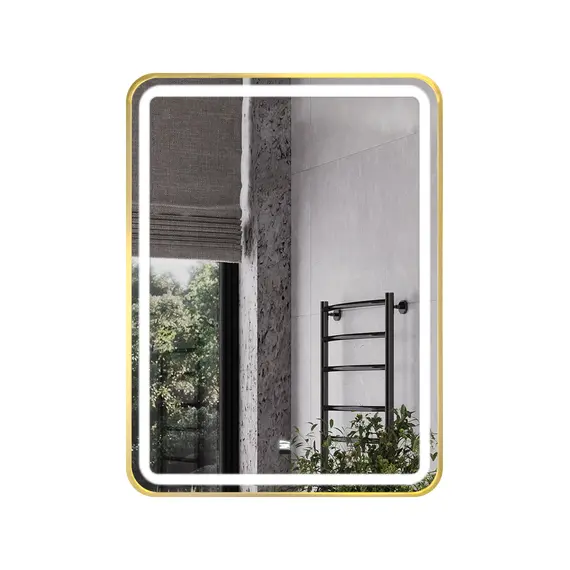 Зеркало в золотой алюминиевой раме 60 см для ванной комнаты Comforty Ситара-60, LED-подсветка, бесконтактный сенсор, антизапотевание