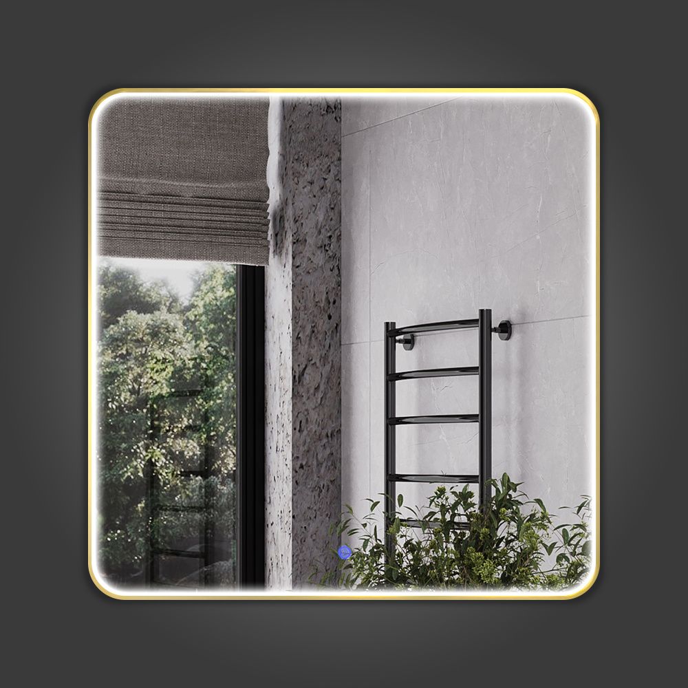 Зеркало в золотой алюминиевой раме 80 см Comforty Сириус-80 LED IC-подсветка теплый свет, сенсор