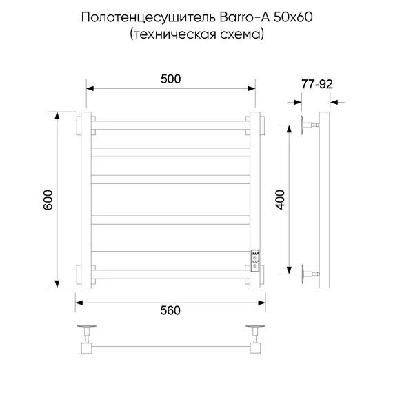 Полотенцесушитель электрический Veconi Barro-A, 50/60, золото матовое