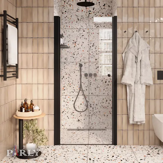 Защищает ванную комнату от брызг воды. Пол возле душевой зоны остается сухим, что снижает шансы поскользнуться после водных процедур.