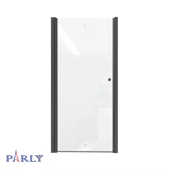 Распашная дверь образует вход комфортной ширины. Модель из прозрачного закаленного стекла (5 мм). Полотно устойчиво к случайным ударам. В случае битья, стекло рассыпается на множество мелких частей с тупыми гранями.