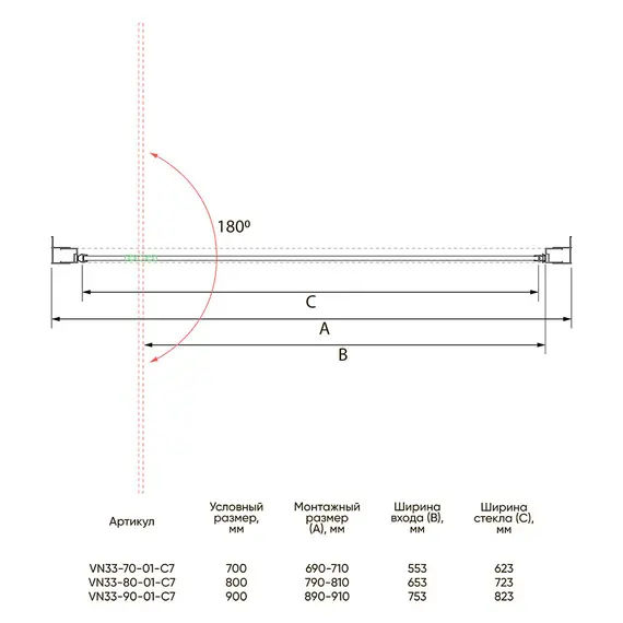 Душевая дверь Veconi Vianno VN-33B, 800x1950, черный, стекло прозрачное
