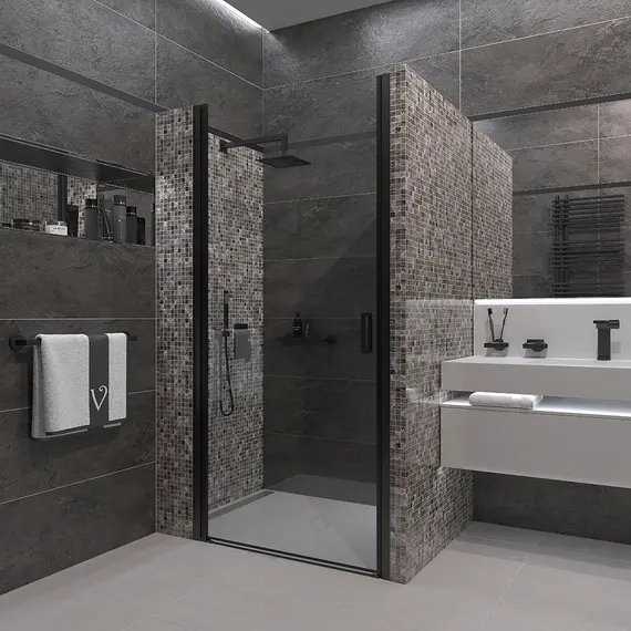 Душевая дверь Veconi Vianno VN-43B, 900x1950, черный, стекло прозрачное