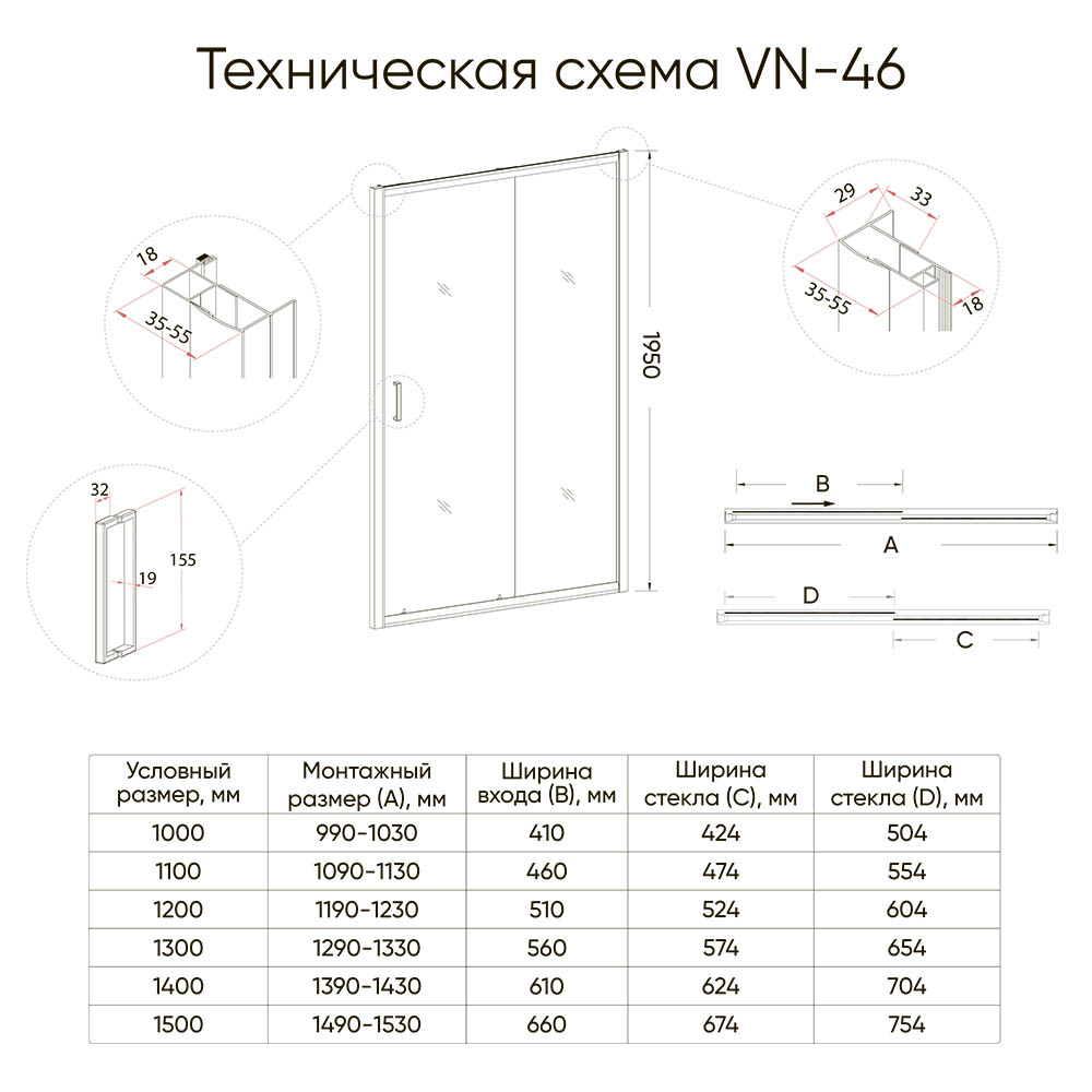 Душевая дверь Veconi Vianno VN-46, 1000x1950, хром, стекло прозрачное