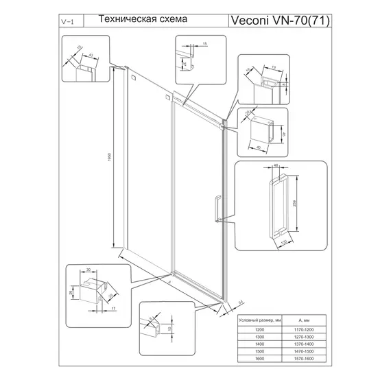 Душевая дверь Veconi Vianno VN-70B, 1400x1950, черный, стекло прозрачное