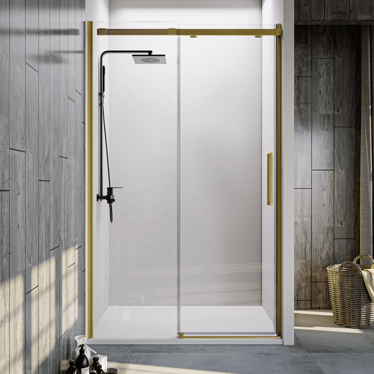 Душевая дверь Veconi Vianno VN-70G, 1500x1950, брашированное золото, стекло прозрачное