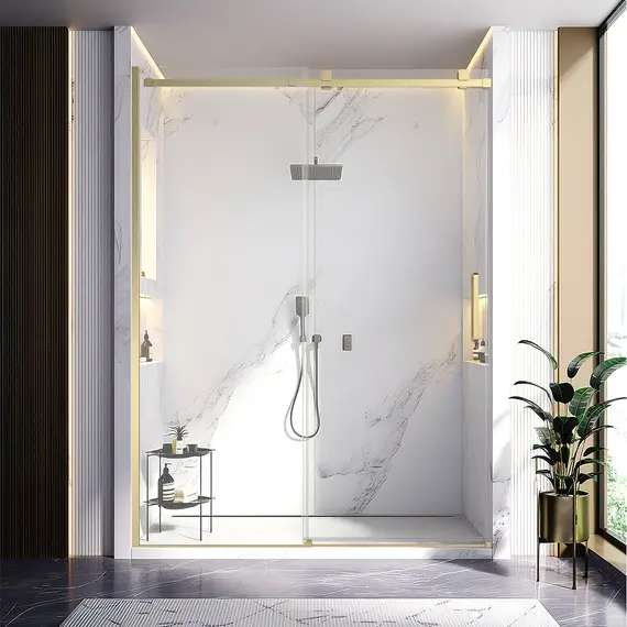 Душевая дверь Veconi Vianno VN-75G, 1200x2000, золото брашинг, стекло прозрачное