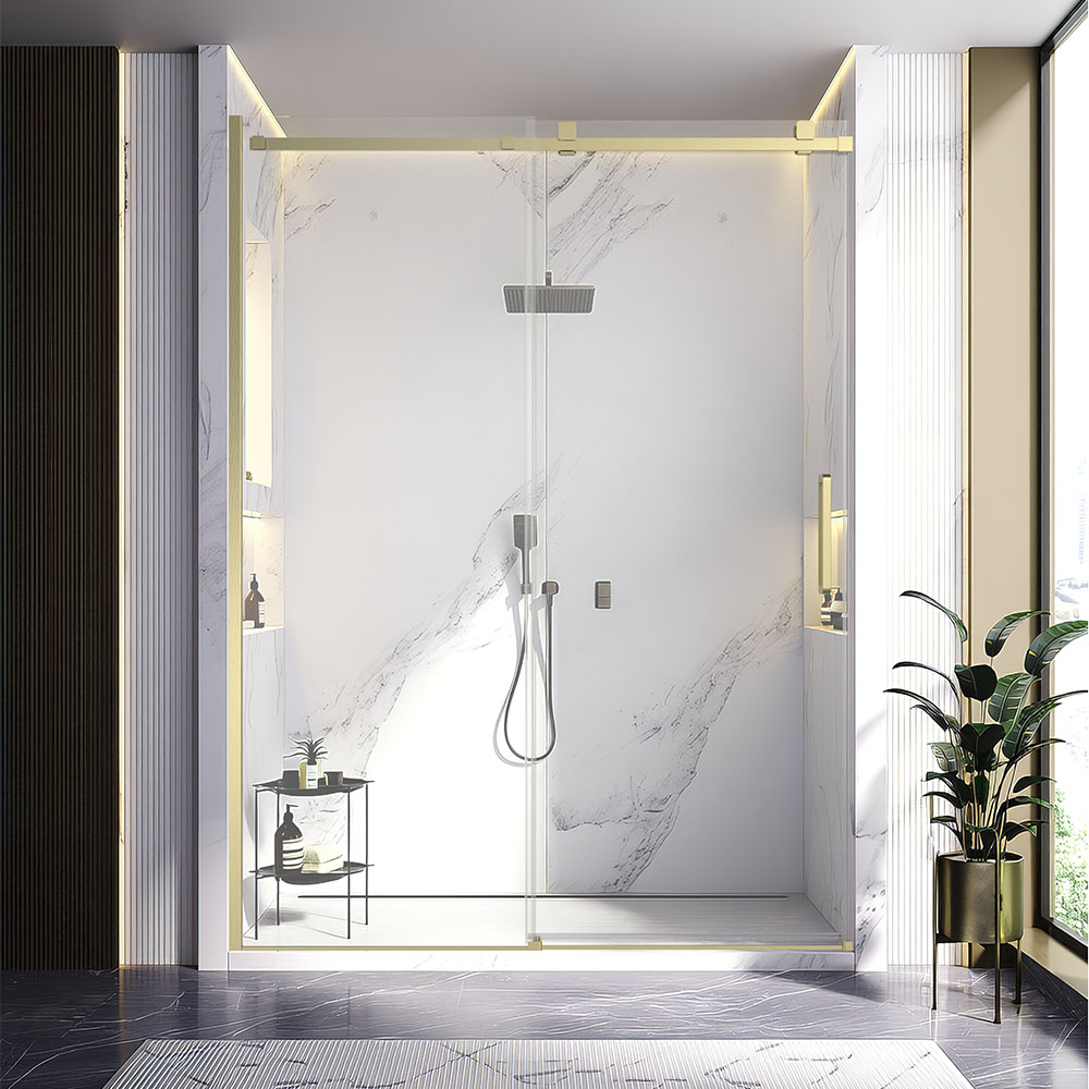 Душевая дверь Veconi Vianno VN-75G, 1400x2000, золото брашинг, стекло прозрачное