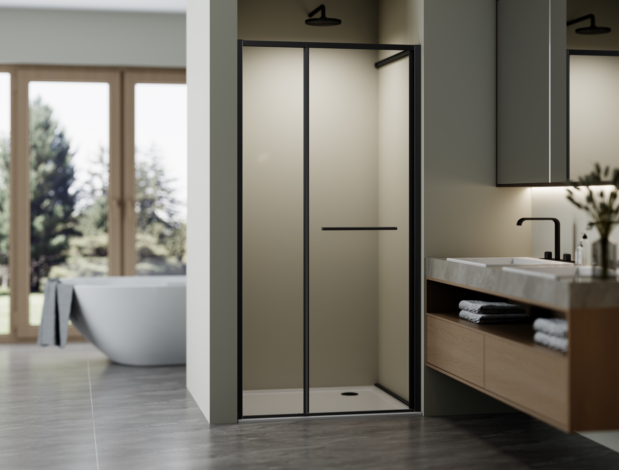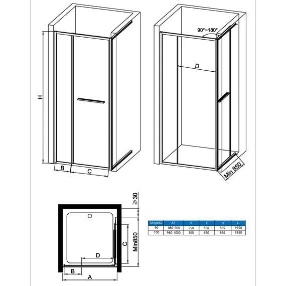 Душевая дверь Vincea Alpha VPSW-3AL100CLB, 1000, черный, стекло прозрачное