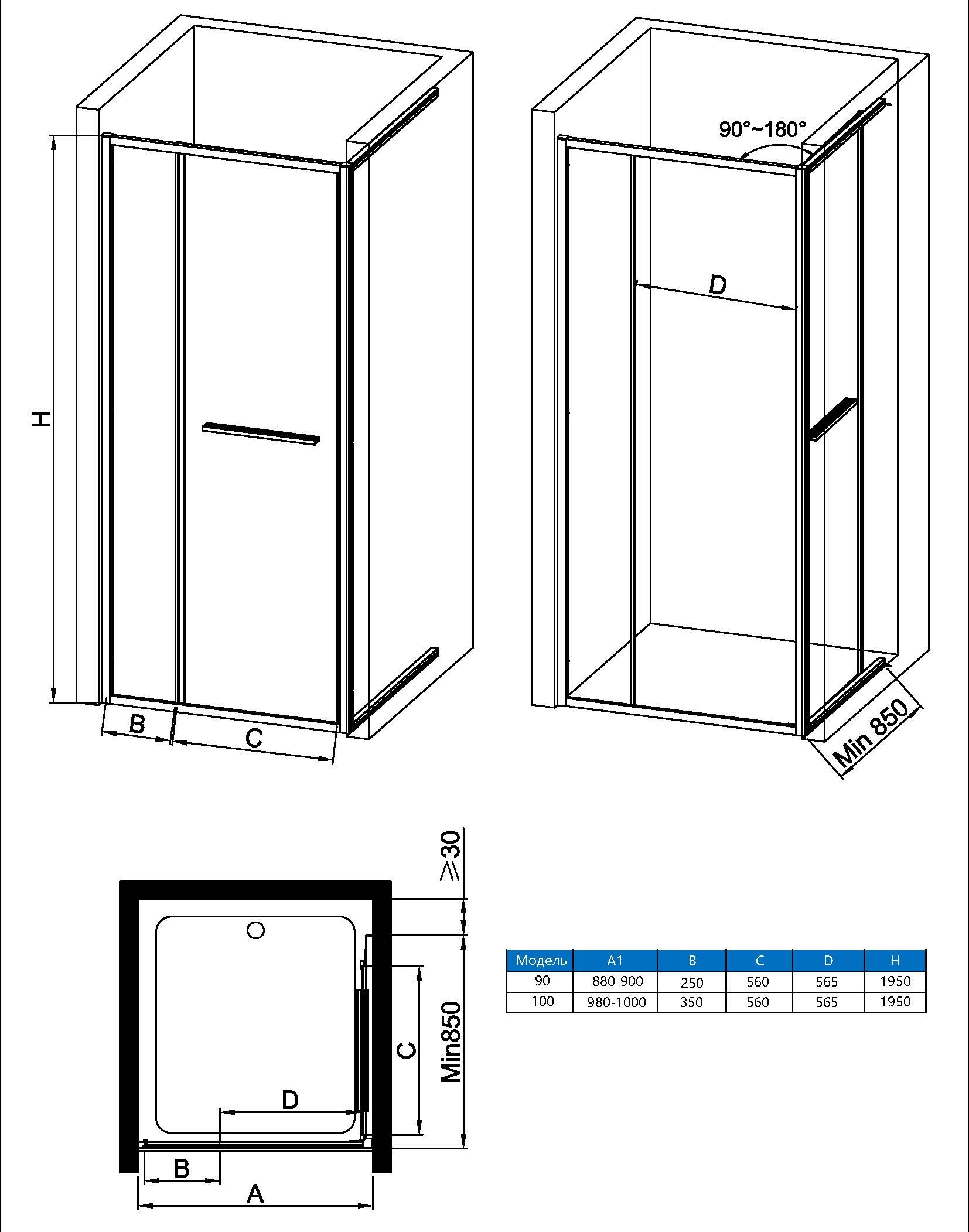 Душевая дверь Vincea Alpha VPSW-3AL900CL, 900, хром, стекло прозрачное
