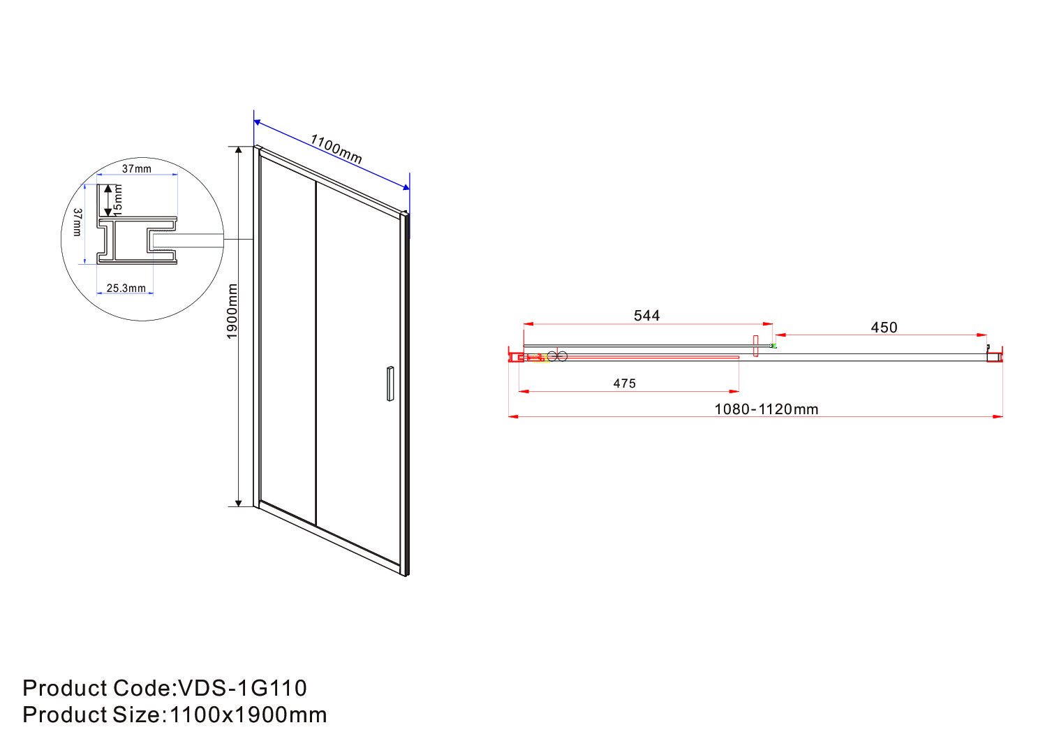 Душевая дверь Vincea Garda VDS-1G110CH, 1100, хром, стекло шиншилла