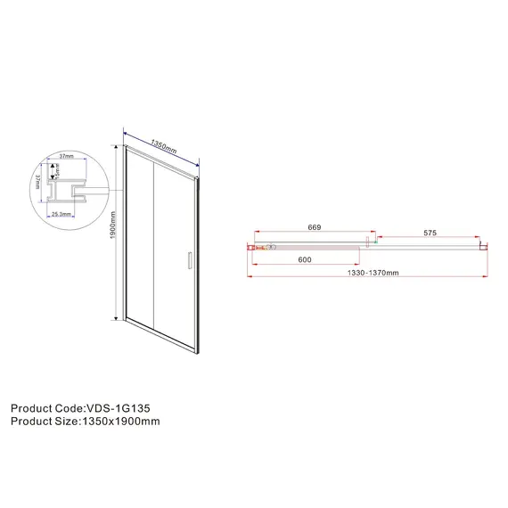Душевая дверь Vincea Garda VDS-1G135CLG, 1350, брашированное золото, стекло прозрачное
