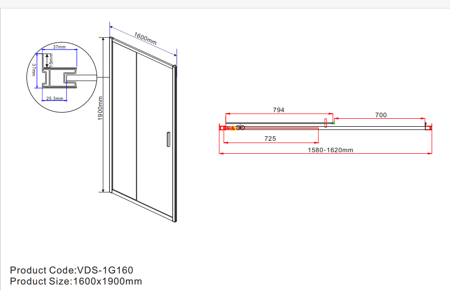 Душевая дверь Vincea Garda VDS-1G160CH, 1600, хром, стекло шиншилла