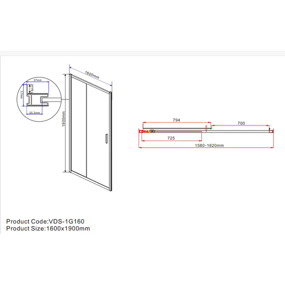 Душевая дверь Vincea Garda VDS-1G160CL, 1600, хром, стекло прозрачное