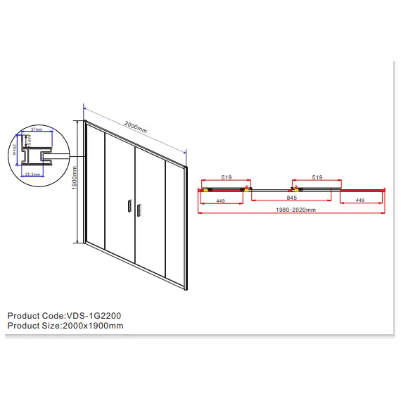 Душевая дверь Vincea Garda VDS-1G2200CH, 2000, хром, стекло шиншилла