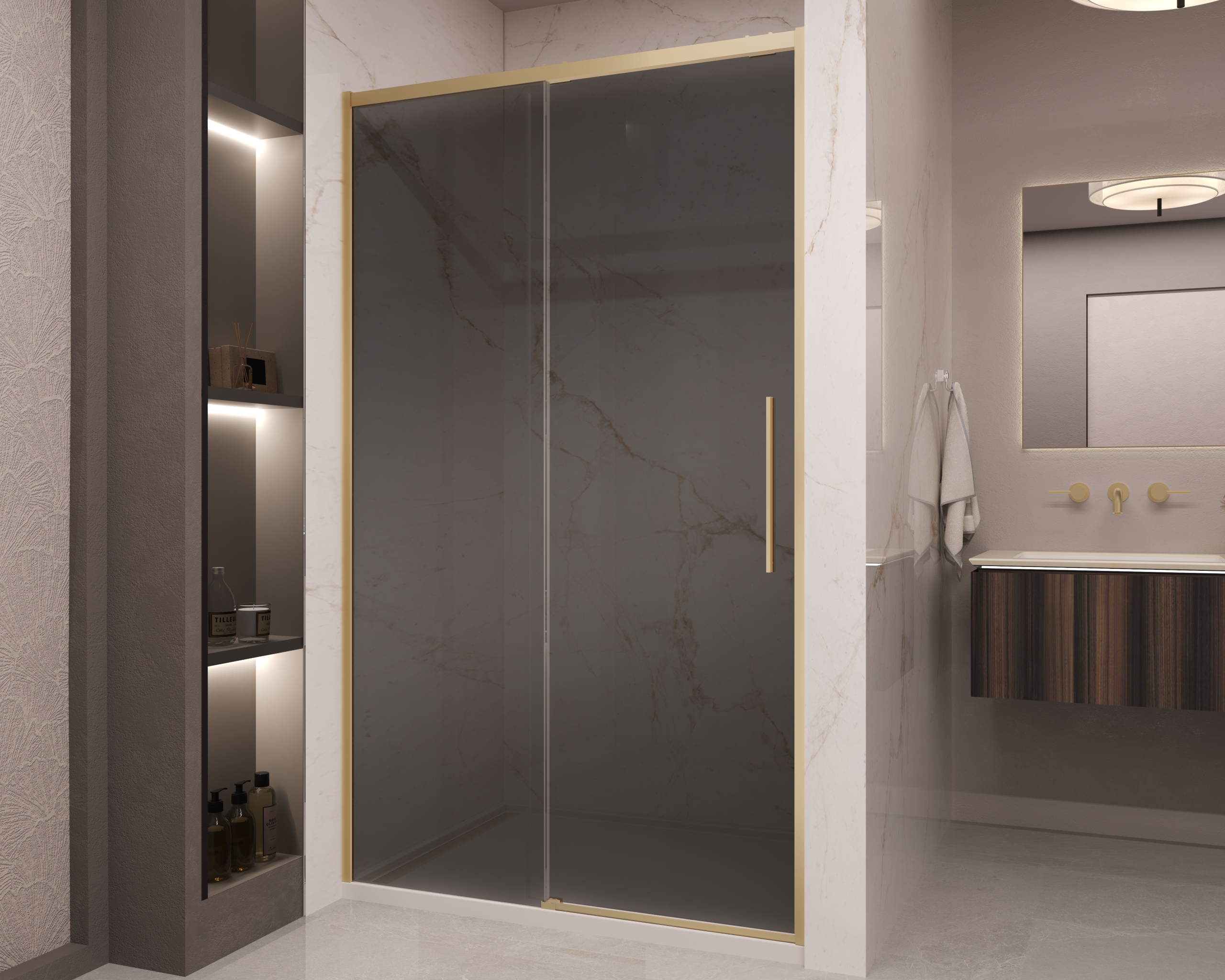 Душевая дверь Vincea Stella VDS-1ST120CGG, 1200, брашированное золото, стекло тонированное